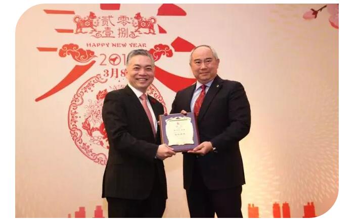 李剑锋会长为香港商会名誉会长、泰国正大集团副董事长罗家顺先生颁发荣誉聘书