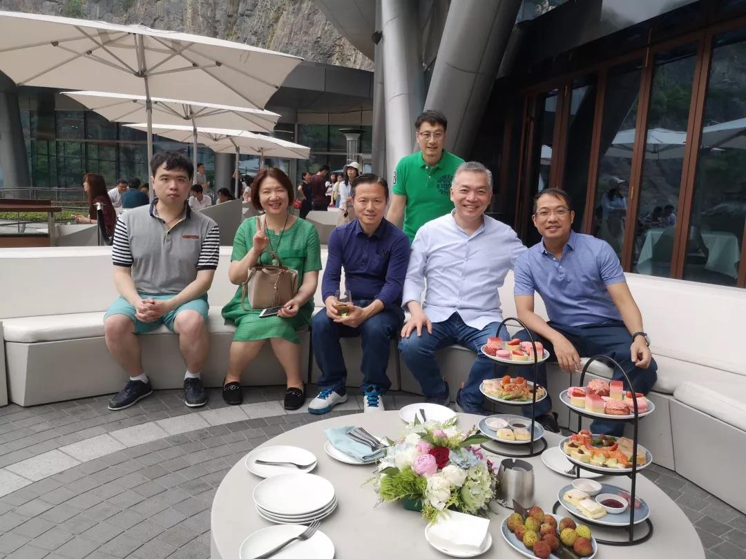 随后商会会员来到了今年大热的“网红酒店”上海佘山世贸洲际酒店(深坑酒店),该酒店耗时12年建成,结合酒店基地采石坑的特点,引入了蹦极中心、水下餐厅、景观餐厅、水上SPA、室内游泳池等适合崖壁和水上活动等多种娱乐服务。除蹦极中心和景观餐厅位于地面层外,其余项目均临水设置。参观之余会员们还享用了一座难求的下午茶,享受美好的夏日时光!