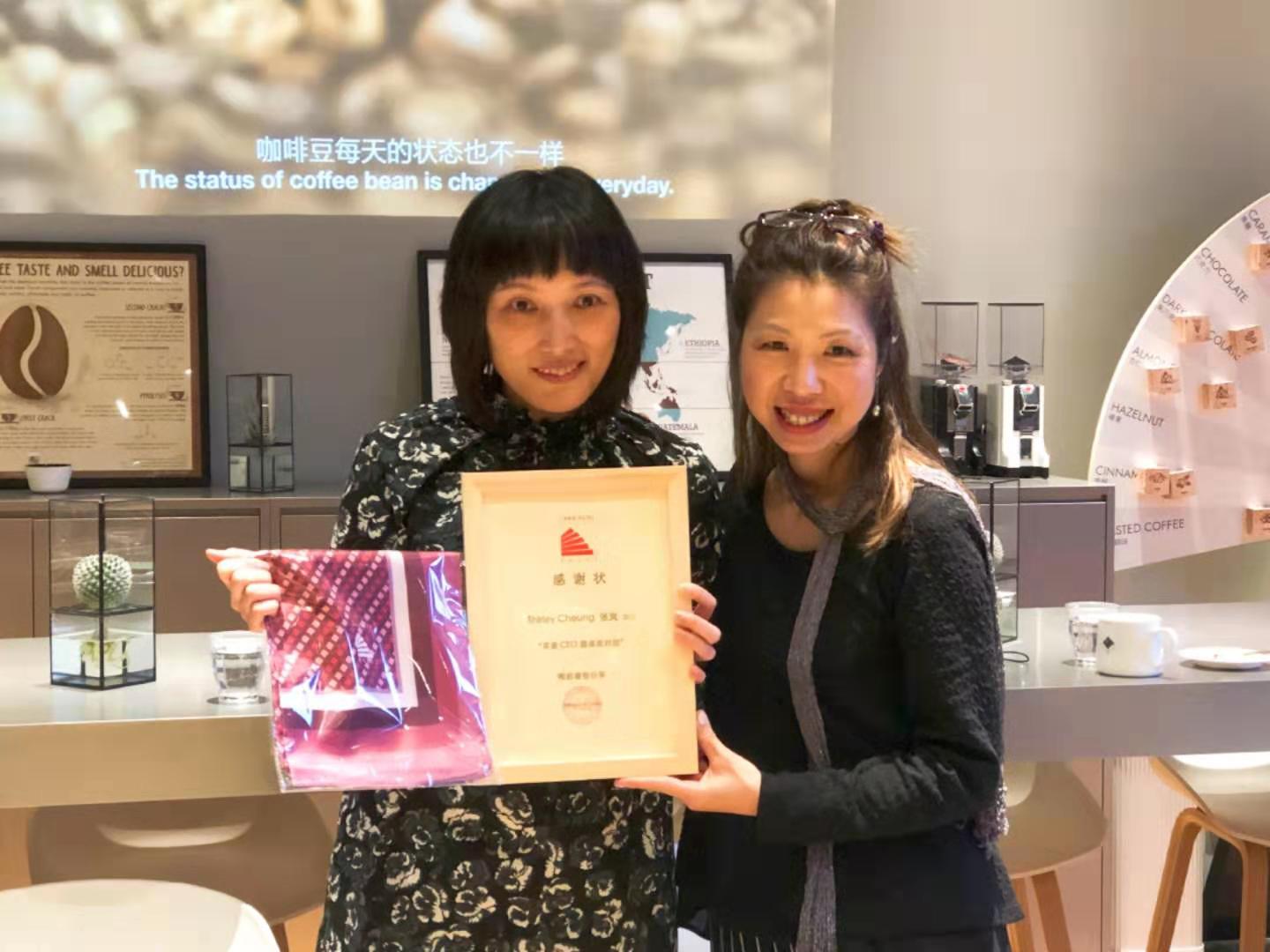 副会长陈宝金女士向张岚女士颁发感谢状