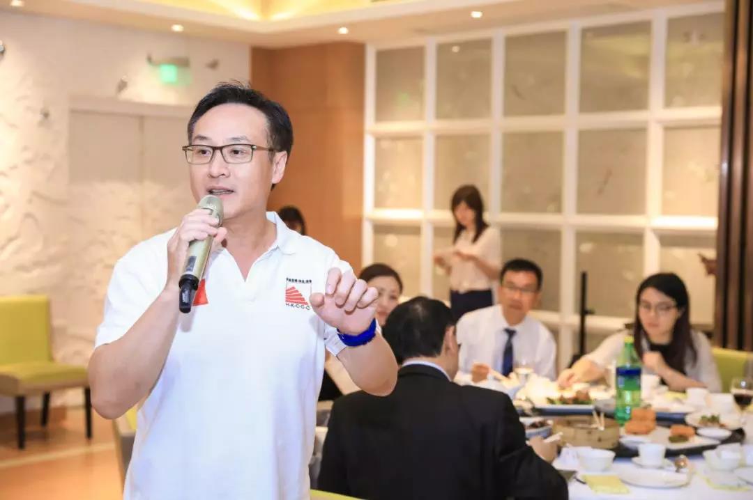 午宴正式开始前,香港商会会长李剑锋先生致欢迎辞。感谢各实习单位对本次活动以及商会工作的大力支持,给香港大学生提供宝贵的实习机会。同时也鼓励同学去调整心态,在实习的7周时间里,全心投入并感受上海的风情和魅力;用全新的角度看问题、看世界,并对在场学生寄予祝福,希望学生们在上海实习愉快。